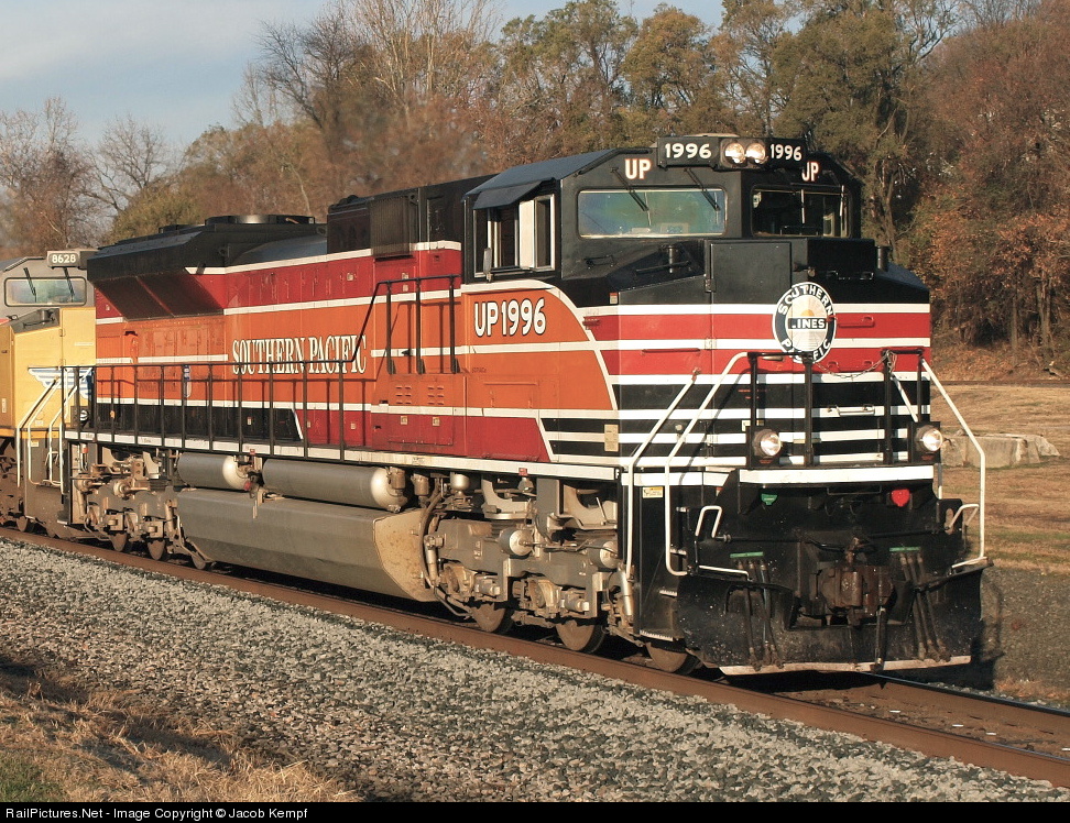 Showing little signs of wear-and-tear, albeit being over 7 years old, UP 1996 soldiers onward, proudly painted in a modern day version of the Southern Pacific Railroad.