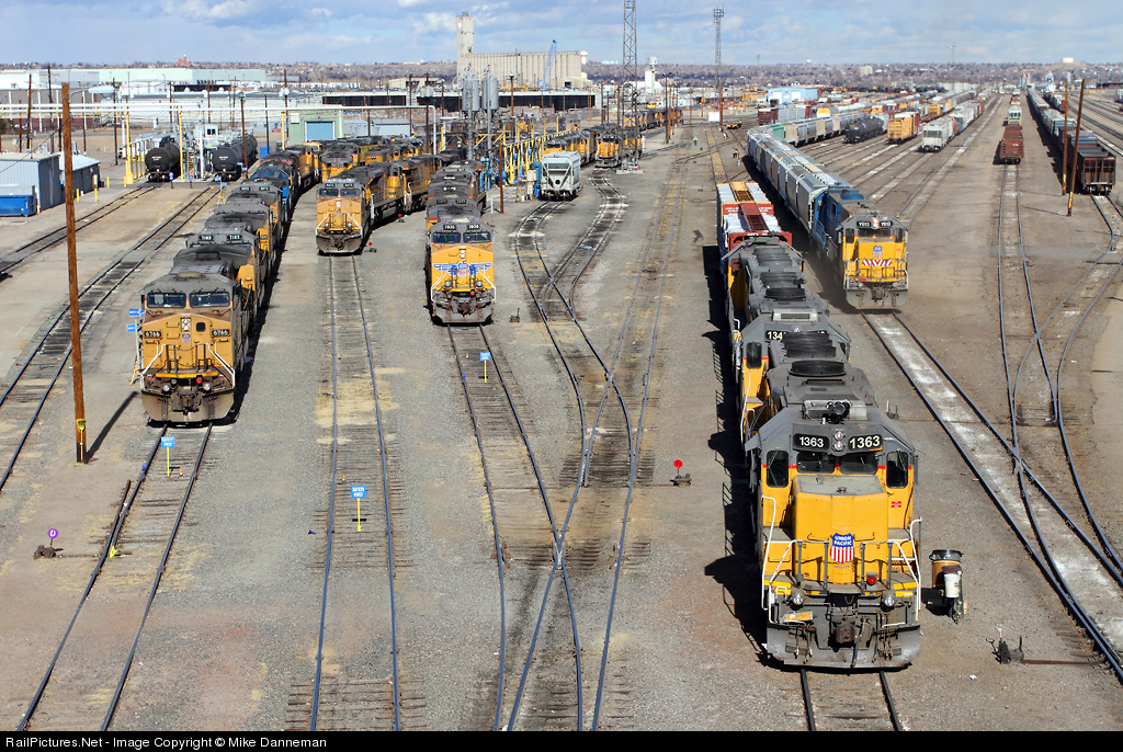 On President’s Day 2013, a slew (that’s a lot, right?) of locomotives populate the tracks of Union Pacific’s North Yard in Denver, Colorado. On the right, the South Local is powered by former Rio Grande GP40-2 No. 1363 (formerly 3111), while one track over, UPY No. Y613 switches the yard. I lost count at over fifty locomotives… including at least two former Southern Pacific and one former Chicago and North Western AC4400CW.