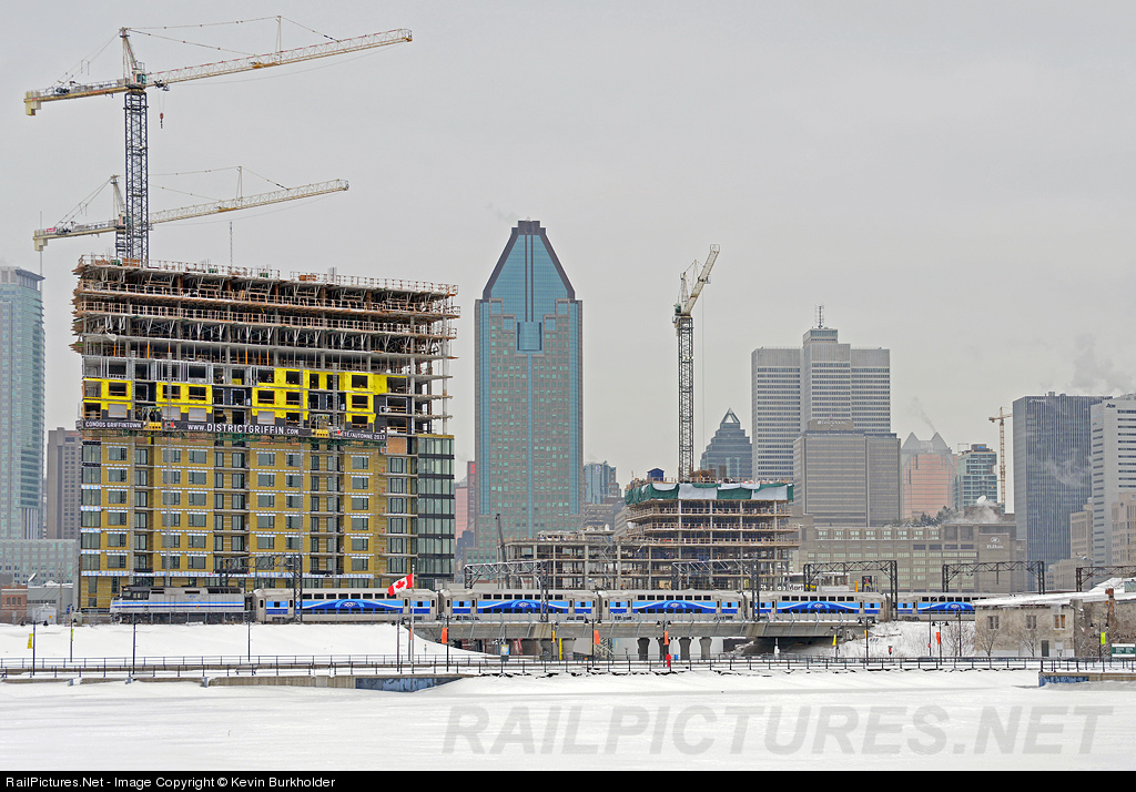 | The Montreal City skyline and the former view (http://www.railpictures.net/viewphoto.php?id=378899) is soon to be a thing of the past when the Griffin District condo project is completed. Crews are busy working on the condos (see the proposed finished structures - http://districtgriffin.com/) as Agence métropolitaine de transport train 809 eases past the construction on the way toward Gare Centrale on the CN St-Hyacinthe-Subdivision. |