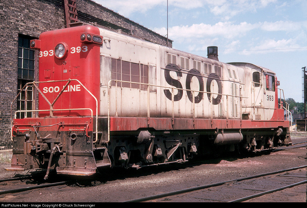 In a photo from my collection by Karl Henkels Soo 393 sits by the Marquette Roundhouse. Only a few of the Ex DSS&A Baldwins received the received the Red/Off White and Black Soo scheme. Photo has been part of my collection for years and was traded for or bought years ago.