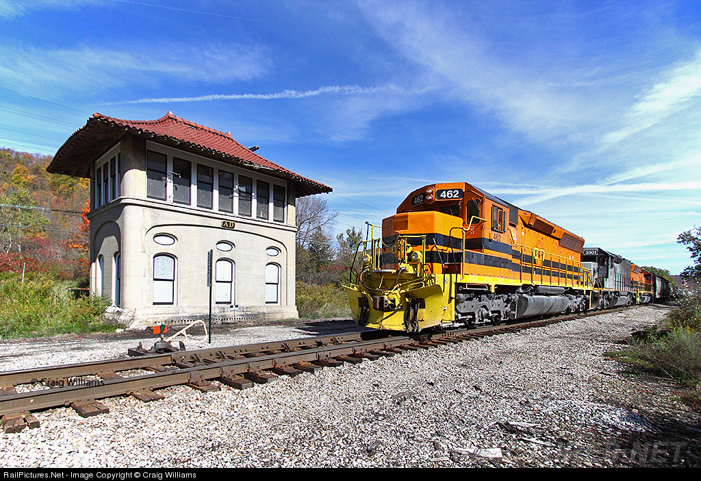 | A very late Salamanca to Buffalo Turn job works back to Salamanca and points south. This is normally a night time operations, but heavy delays in Buffalo has the train running in the morning light. Here the train passes the old AD Tower. This is where the BP's line use to go north to Buffalo til they switched over to the NS's Buffalo Line north of Machias. |