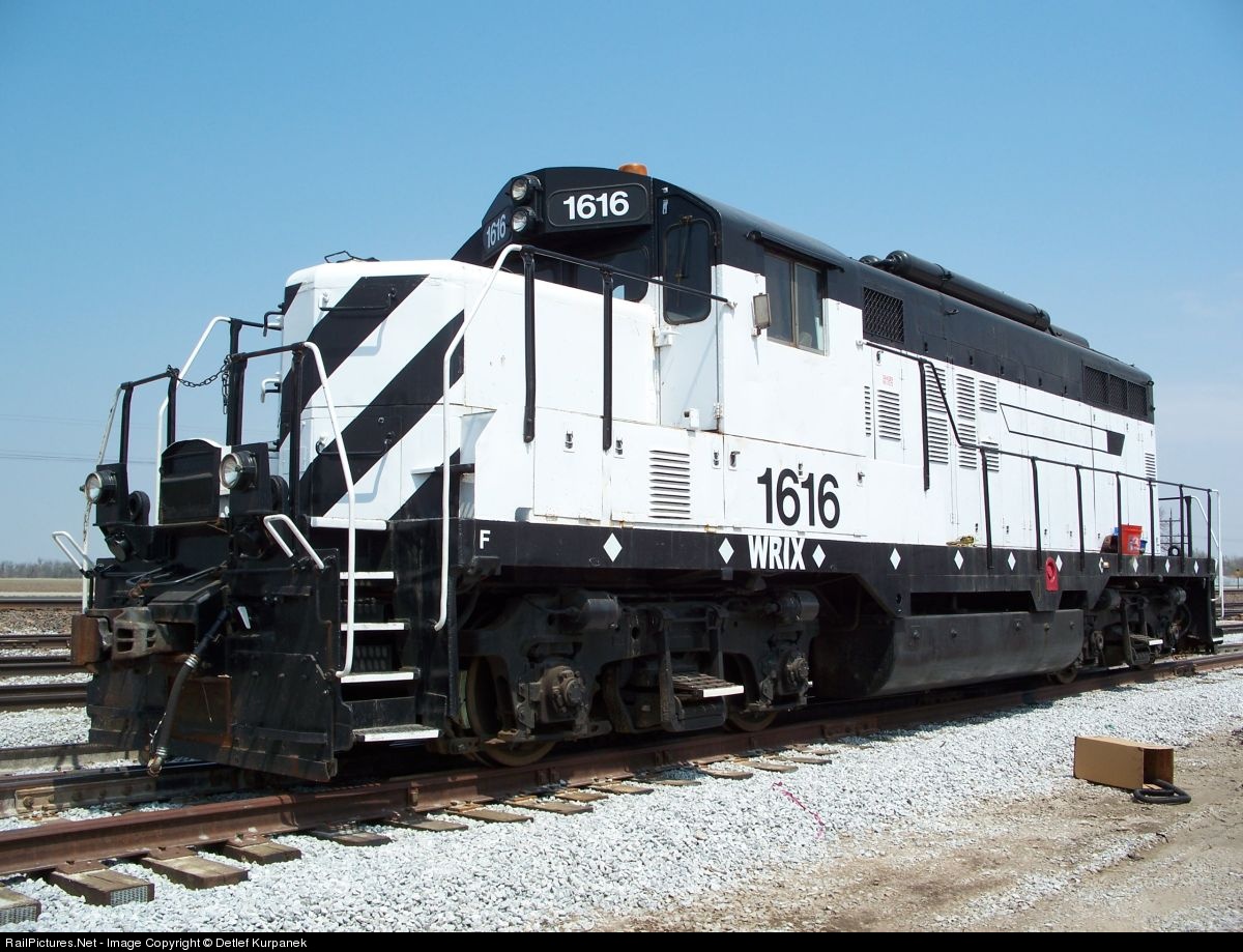 Purchased from and still wearing WRIX reporting marks, loco 1616 is working ethanol and DDGS cars at the ethanol plant. Built in June 1955, it worked as NP 228, BN 1854, BNSF 1616, and now still going strong handling switching duties.