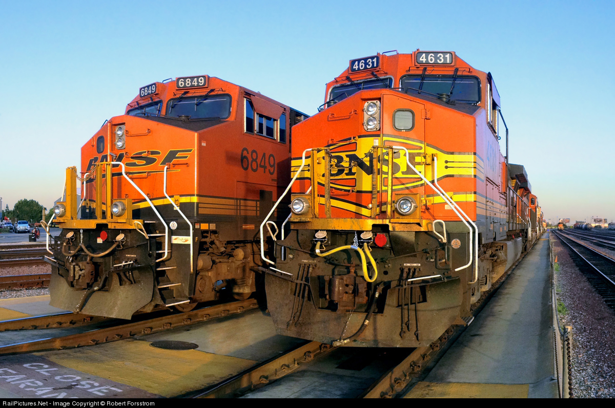 BNSF ES44C4 6848, and C44-9W 4631, are soaking up the last rays of Monday's sunshine. BNSF road power at Commerce Diesel Service (in the City of Commerce, CA), ready to pull eastbound stack trains out of Hobart Yard just a couple miles away down the lead.