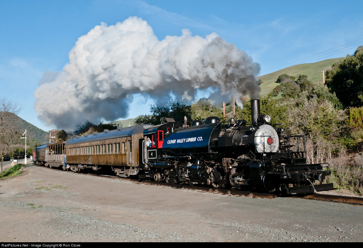 Clover Valley Lumber Co. No. 4 arrives at the Sunol depot in grand style for the 4th annual Winterail Photographer's Special. The Pacific Locomotive Association began restoration in 2007 and the No. 4 ran under its own power for the first time since 1985 in Aug. 2012. This Baldwin logging mallet is one of only two operating in the US.