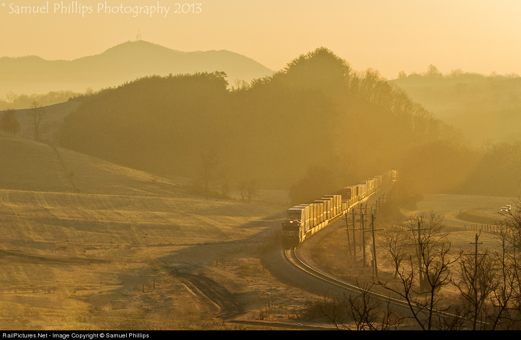 Just after sunrise, the rear DPU unit on heavy eastbound double-stack train No. 23G passes through a beautiful scene just outside the community of Wytheville, Va., on a chilly March morning.