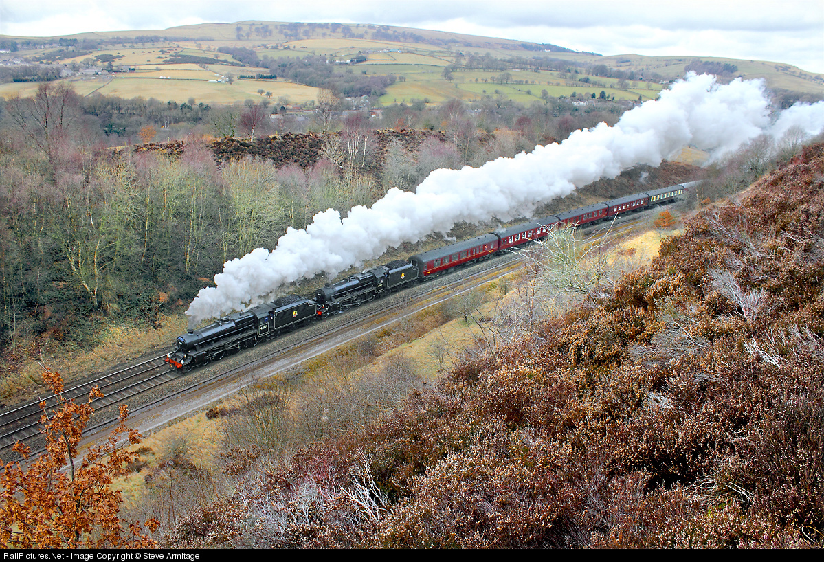 It was quite a challenge to keep my footing in the wet heather as I stood some 80 or 90 feet above the track at Gowhole cutting awaiting the passage of the 'Tin Bath' special. One of the year's steam highlights, the special runs a circular route through some of Northern England's most beautiful scenery. Abounding in steep gradients, long tunnels, spectacular viaducts and other monuments to the navvies work. I have no idea why the 'Tin Bath' special should be so named and even less idea why the headboard actually carried was for 'The Jacobite'! No matter, the spectacle was wonderful.