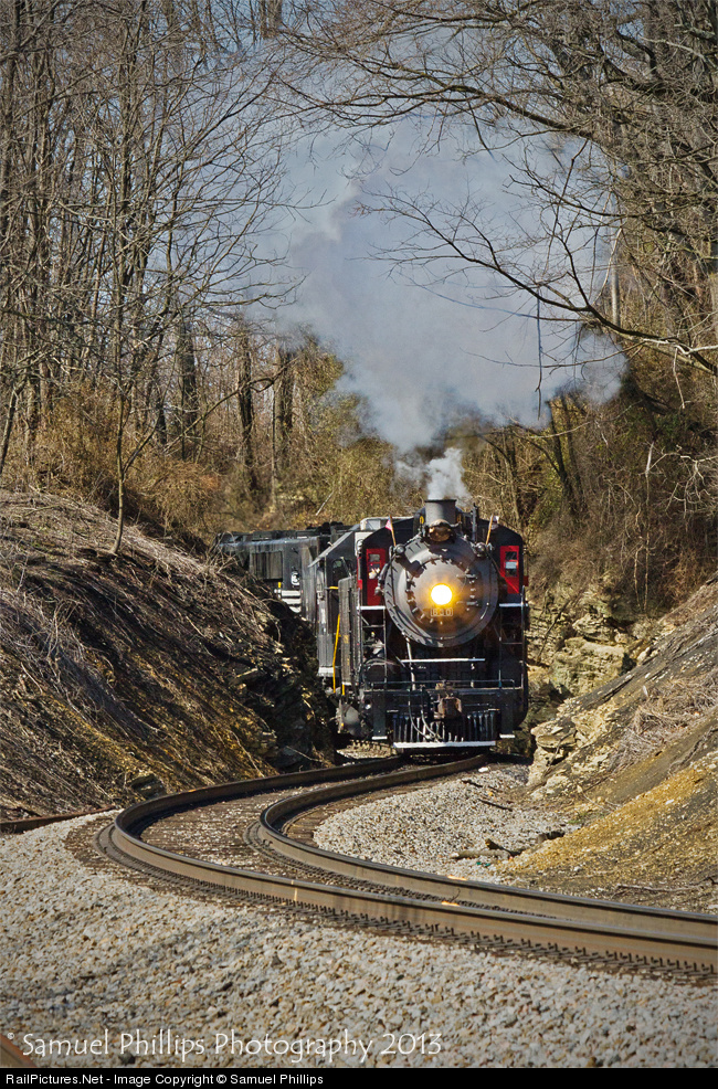 Southern 630 leads a public excursion into a sharp S curve just outside Pulaski, Va., on a balmy afternoon while putting out a nice plume of smoke. The train is en-route to Radford from Bristol, and passengers have enjoyed absolutely beautiful scenery the whole way.