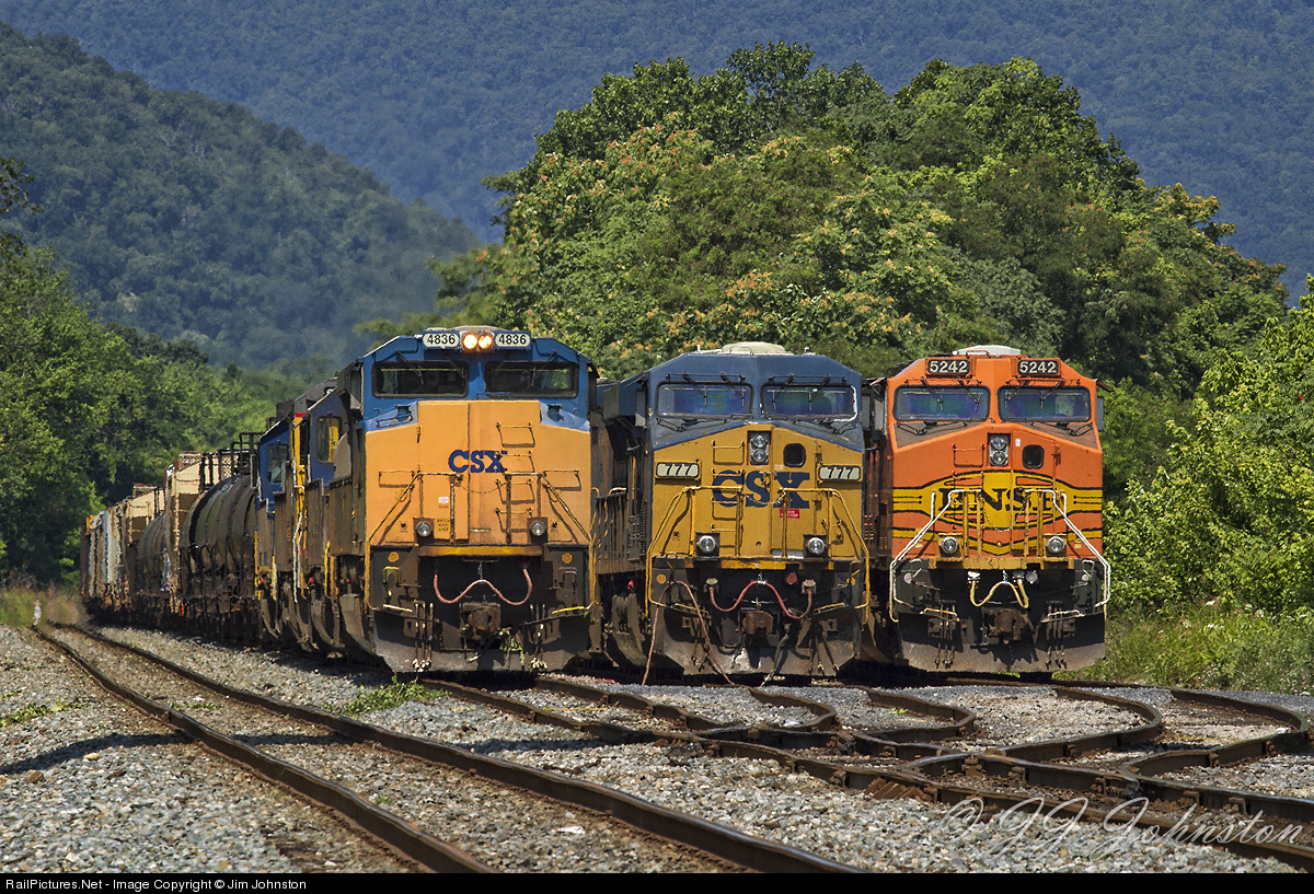 A trio of trains sit at Brunswick, MD on the morning following the June 2012 Mid-Atlantic and Midwest derecho. The storms were one of the most destructive and deadly fast-moving severe thunderstorm complexes in North American history. The CSX Cumberland and Metropolitan subs were essentially shut down for days as the storm damage to the mainlines was cleared.
