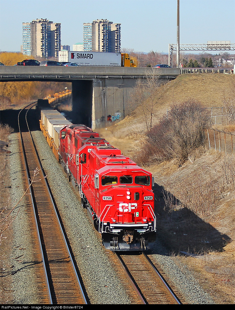 Fresh from Rebuild! CP 6258 (ex-SOO Line 6058) strolls Westward out of Toronto Yard, continuing her maiden voyage since being rebuilt in CAD shops in Montreal. This was completely a surprise, and after shooting it East of Toronto, I knew a chase was in order. The weather remained beautiful and helped me to make the best of this amazing catch. Trailing is rebuilt SD60 6223 (ex-SOO Line 6023), and CP SD40-2 6003.