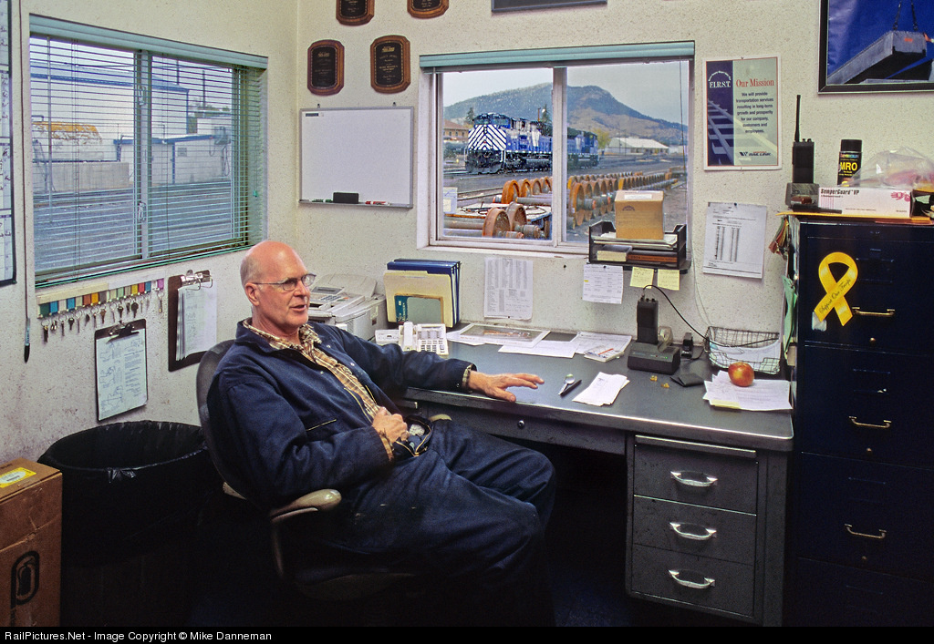 As raindrops continue to patter and run down on the roundhouse office windows, Montana Rail Link Machinist Kevin Leonard contemplates what these new EMD locomotives will mean to his job after changing the filthy air filters on Montana Rail Link SD70ACe Nos. 4305 and 4302 at Helena, Montana, late in the afternoon of October 8, 2005. The the steep climb up Mullan Pass west of Helena, and the long, confining summit tunnel are very hard on locomotives. In 2009, MRL enlarged the clearances of Mullan Tunnel to ease the situation a bit, but as long as trains continue to climb Mullan Pass, the Helena Roundhouse will always have to care for the well-used helpers that call Helena home.