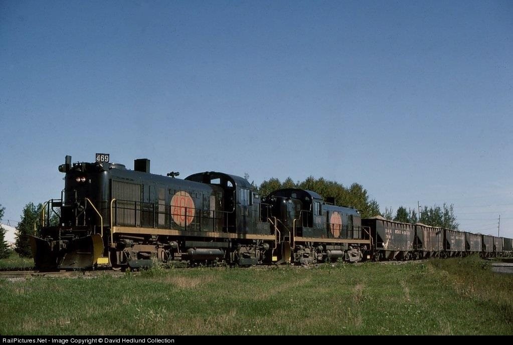 | D&M RS-2 469 built new Nov. 1946 leads RS-3 1077, ex Long Island 1553 with a stone train.