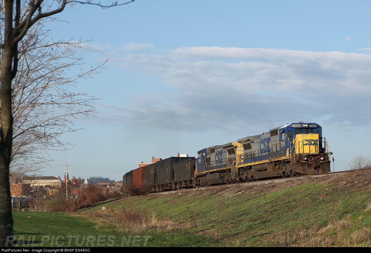 RailPictures.Net Photo: CSXT 7595 CSX Transportation (CSXT) GE C40-8 (Dash 8-40C) at Homestead, Pennsylvania by BNSF ES44DC