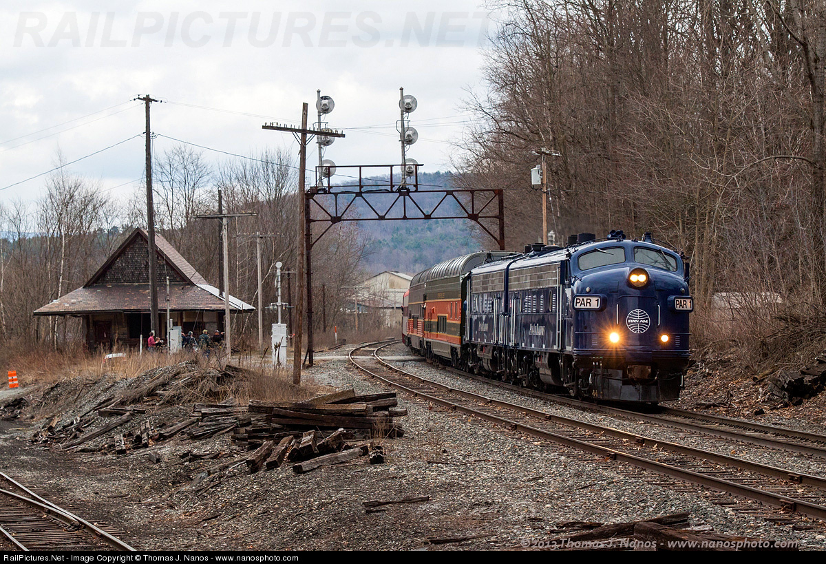 | The High Iron Travel excursion over PanAm Railways' former Boston & Maine west end passes through Eagle Bridge, NY. |