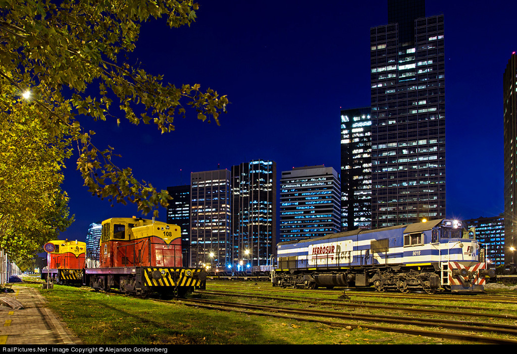 At right GT22 9016 switching before departing to Km 5 yard. At left the two GE from Port of Buenos Aires Administration and behind them ( not seen here) the brand new chinese locomotives recently arrived to Argentina. What you see a background is Catalinas Norte Towers, the most important business complex in downtown Buenos Aires.