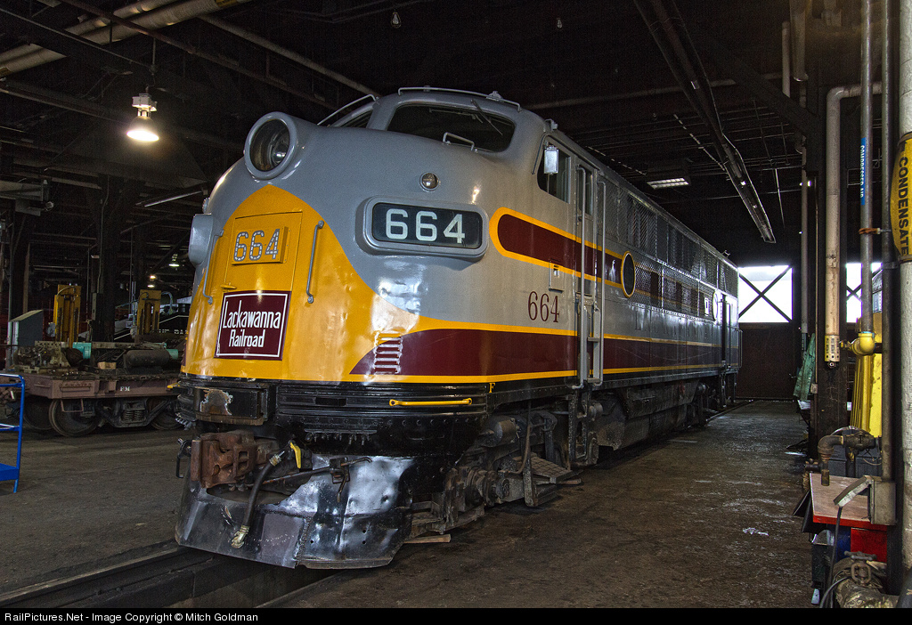 The Anthracite Railroads Historical Society's 1948 F3(A) sits in the roundhouse at Steamtown. Former BAR, to CNJ and now in DLW livery - that's one long illustrious career!