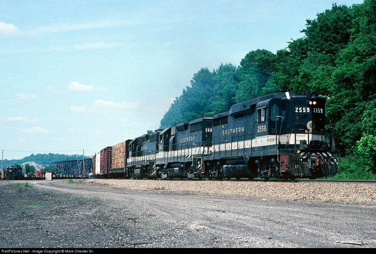 | Southern Railway GP30 #2559 leads a southbound train through Ludlow, KY just a few days after the Norfolk Southern merger.