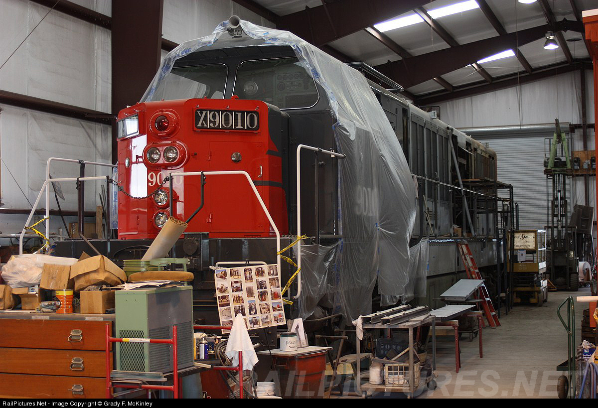 SP #9010 (former SP #9113) a Krauss-Maffei ML-4000 sits in the shops at the Niles Canyon Railway in the process of being restored to a cab control car. Details about the restoration project can be found here: HTTP://sp9010.ncry.org.