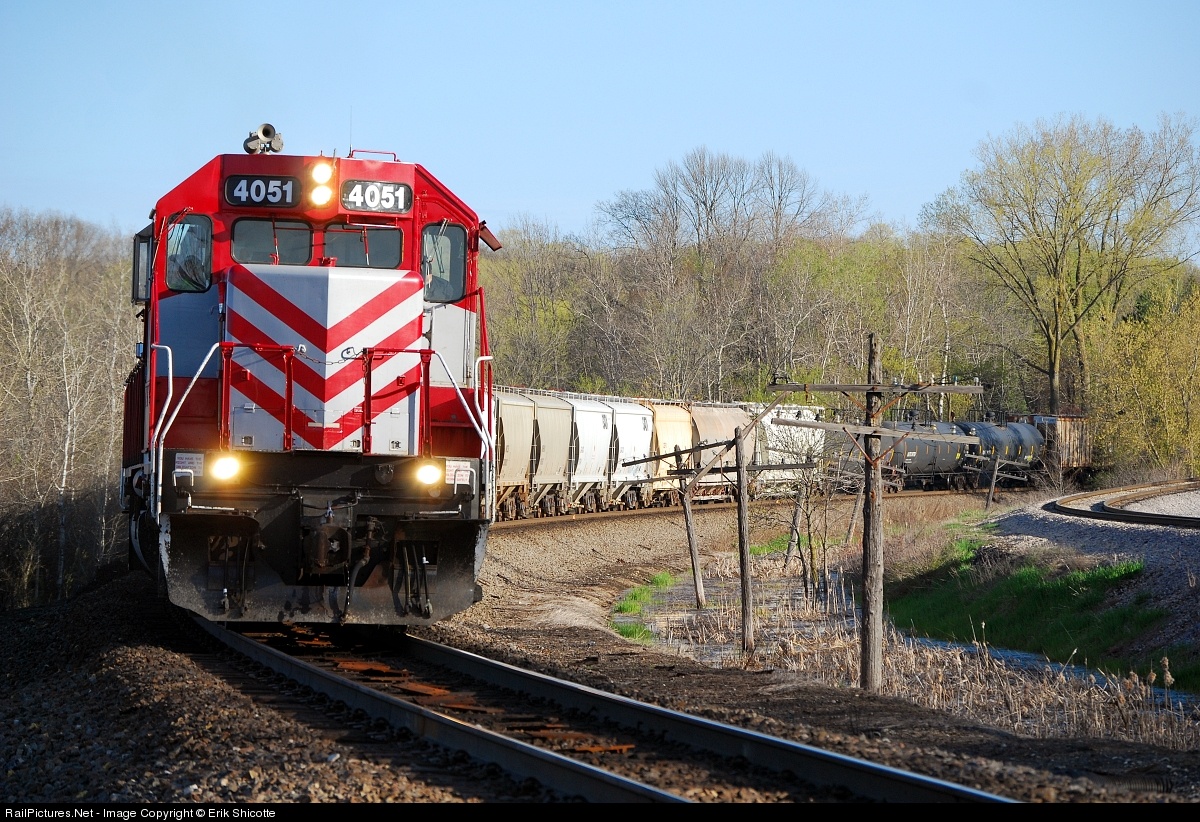 A nice, clean, non-dyno leader swings through the big curve into Ackerville on the CN, en route to the WSOR Waukesha Sub. To the right is the WSOR's own Milwaukee Subdivision which crosses the CN Waukesha Subdivision via a power switch in Slinger proper.