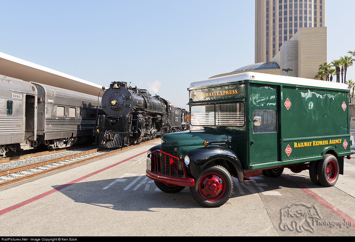 ATSF 3751 and a Railway Express truck were on display at L. A. Union Station for National Train Day.