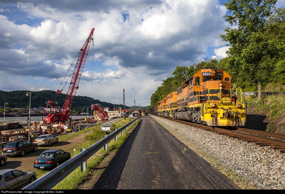 Buffalo and Pittsburgh 3333 heads empties down CSX's Mon Sub, namesake subdivision of the Monongahela River in which it follows to Newell. A Norfolk Southern crew will then take the train across the river at Brownsville to the connection for NS's Mon Line, where it will follow the river a little more until Clarksville where it'll start heading compass West, railroad south. After snaking through the confines of Greene County and getting to Waynesburg, it will then take NS's Manor Branch to Bailey mine, and head back the reverse way it came down. To the left of the train is Lock and Dam #3, which has been slated to be removed as part of a system wide project to overhaul, upgrade, and remove any outdated lock and dam navigation ports. It was to be removed in 2009, but funding has made it necessary to remove it between now and 2014. But unfortunately, funding is necessary to keep this 108 year old structure alive until then.