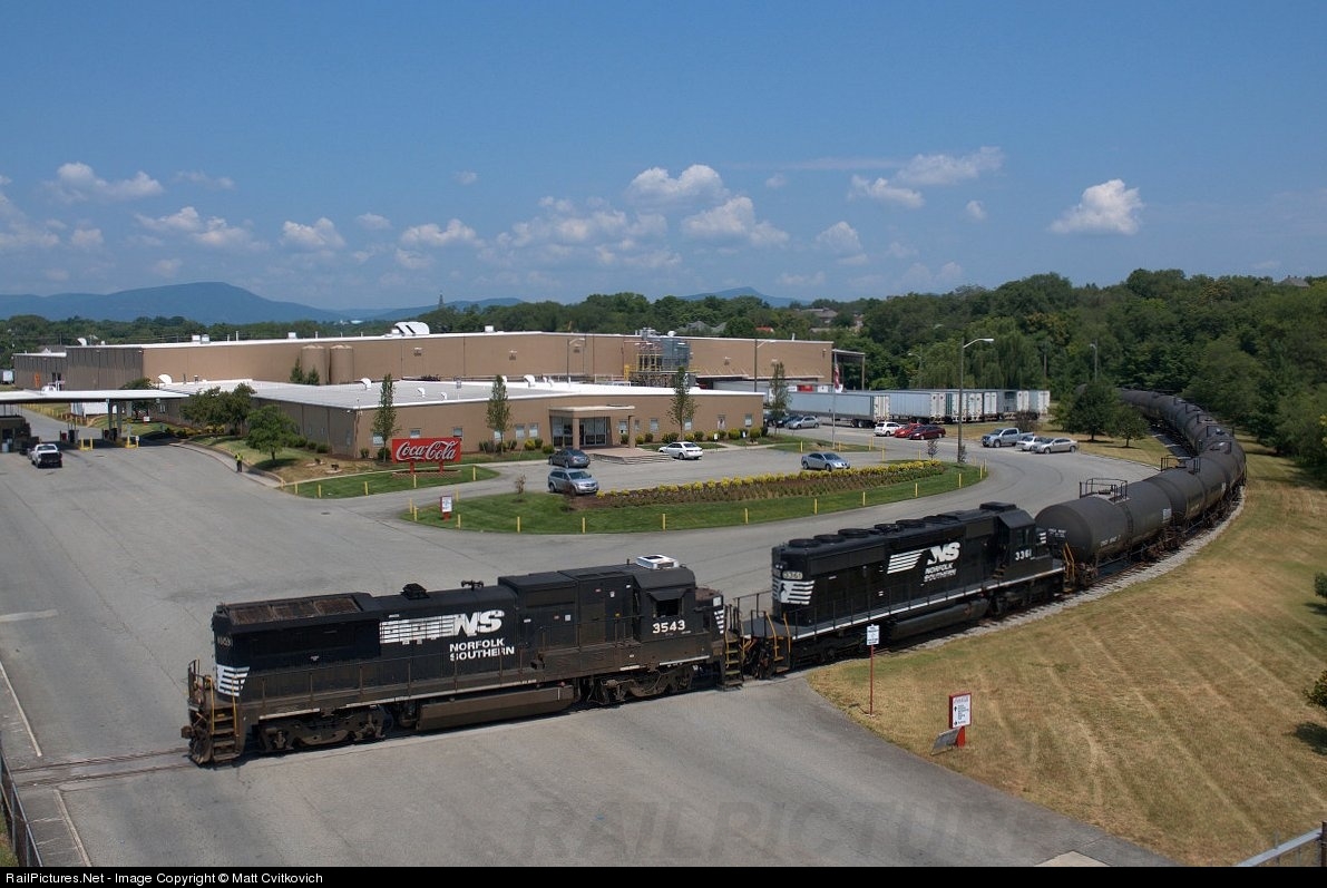 A Dash 8-32B removes empty tank cars from the Coca Cola plant in Roanoke, Va.