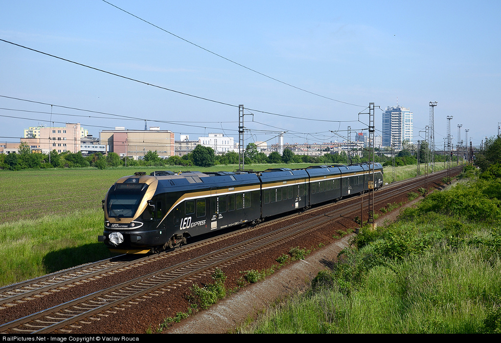 Open-access train operator LEO Express use Stadler FLIRT EMUs for inter-city services. Train LE 1353 Praha hl.n. 6.29 - BohumÃn 9.52 just left station Olomouc.