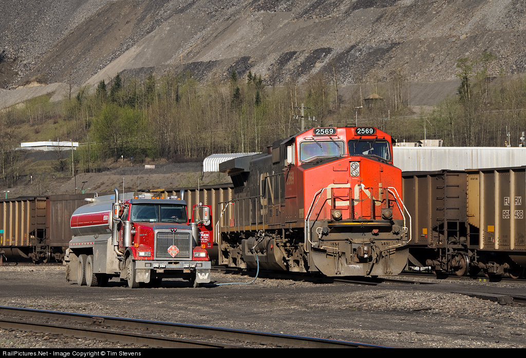 CN 2569 takes on fuel at Winniandy being prepped to head south on a coal train.