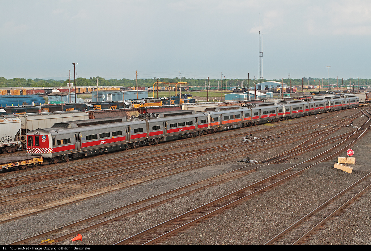 Former Metro-North CDOT M2's (Cosmopolitans) arrive at Selkirk Yard on the end of an inbound train from West Springfield, MA. The 8 cars (4 sets) are making their way to the scrap yard after 40 some odd years of service in metro NYC. Car numbers are FICX 8501,8500,9029, 8534, 8519,8518,8545,8544