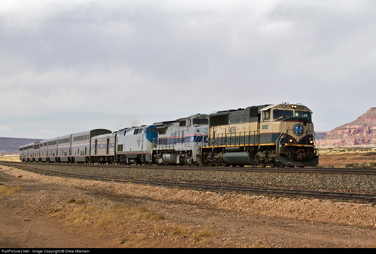 BNSF SD70MAC #9436 helps out a 7+ hour late Amtrak train #4 eastbound at Bluewater, NM on 5/4/13. This engine was added at Kingman, AZ, and would lead this train all the way to Chicago, IL since there was no Amtrak protection engine in Albuquerque, NM.