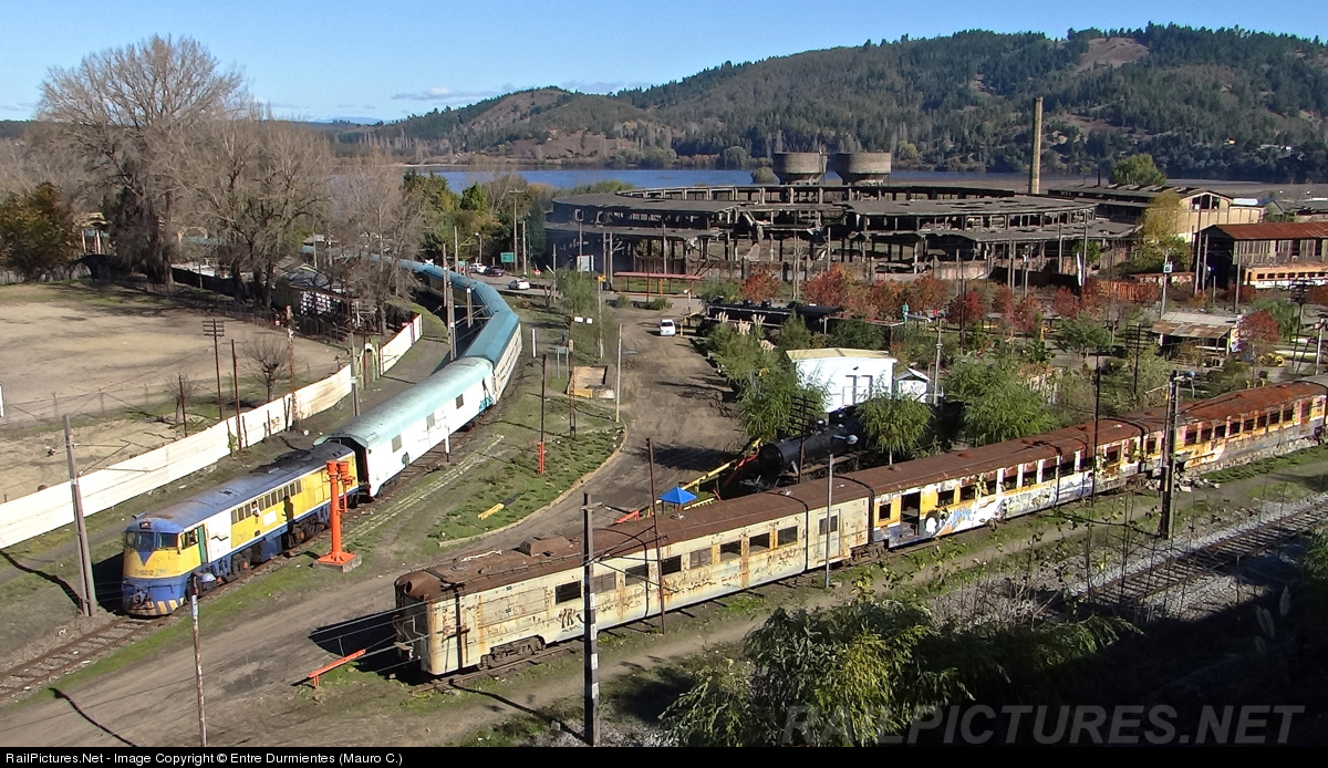 Passenger Train from Temuco, with a legendary locomotive "Shovelnose", passes through the historic San Rosendo railway triangle. San Rosendo was an important railway epicenter in Chile, especially in the times of steam locomotives. Currently you can see traces of that, as the great house of locomotives, the coal bunker, workshops. On site there is a Mikado steam locomotive No. 708, a Mountain steam locomotive No. 802, a passenger automotive of Italian origin AM-21, and a passenger automotive of German origin AM-10. There are also cars, many freight cars, a davit, etc.. Currently the railway triangle just go spend many freight trains and some passenger trains, as San Rosendo is the meeting point of two major rail networks. My sincere thanks to my friend and chilean railfan Nelson Beseler, great documentary on the history of railways in Chile, coming from a family with a long railway tradition, and lived many years in San Rosendo.