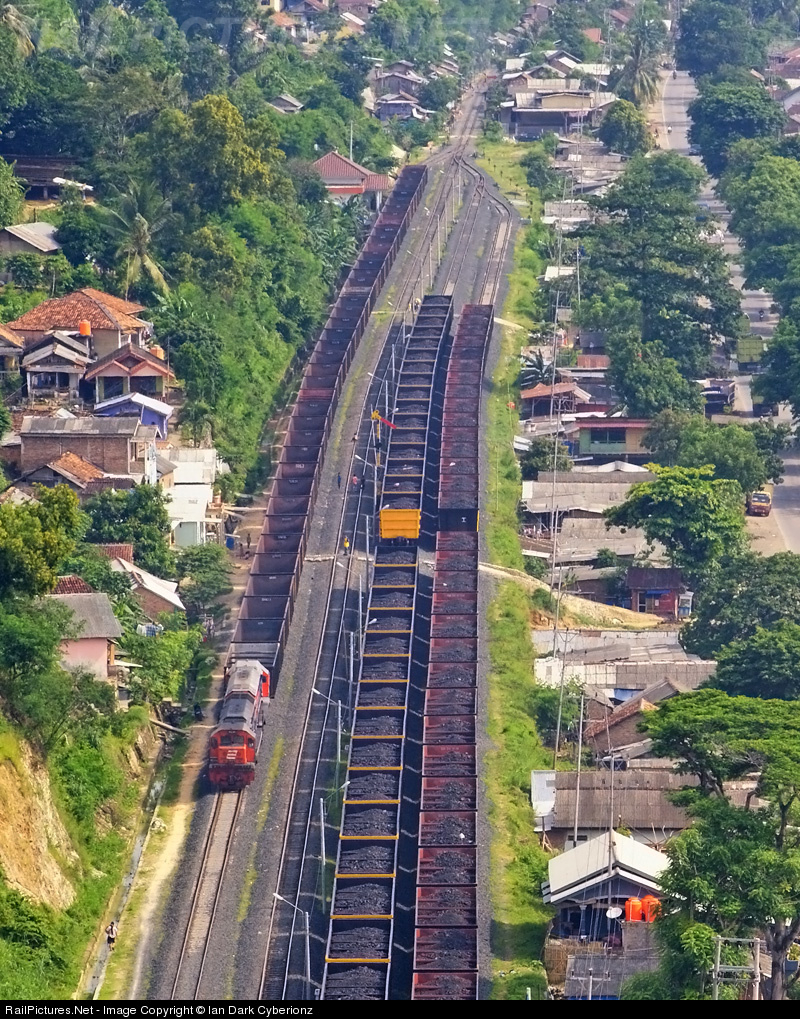 | The Double Head of CC202 (EMD G26MC Series) leads The Longer of Empty Coal Wagons, passing at Sukamenanti Station. The route of this train is Muara Enim Station (The Station of Load Coal) to Tarahan Station (The Station of Unloading Coal), VV. |