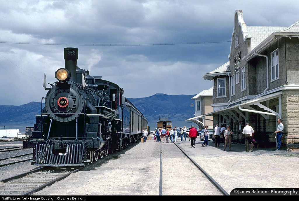| Nevada Northern Railway's 'Ghost Train of Old Ely' prepares for departure from East Ely station for scenic Robinson Canyon. NN 40 is a Baldwin 4-6-0 Ten-Wheeler, built new for the Nevada Northern Railway in July 1910. |