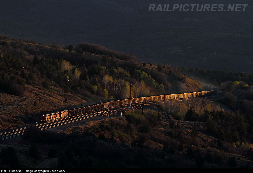 Brake shoes smoking....Utah 5003 carefully descends the 2% at Gilluly, UT.