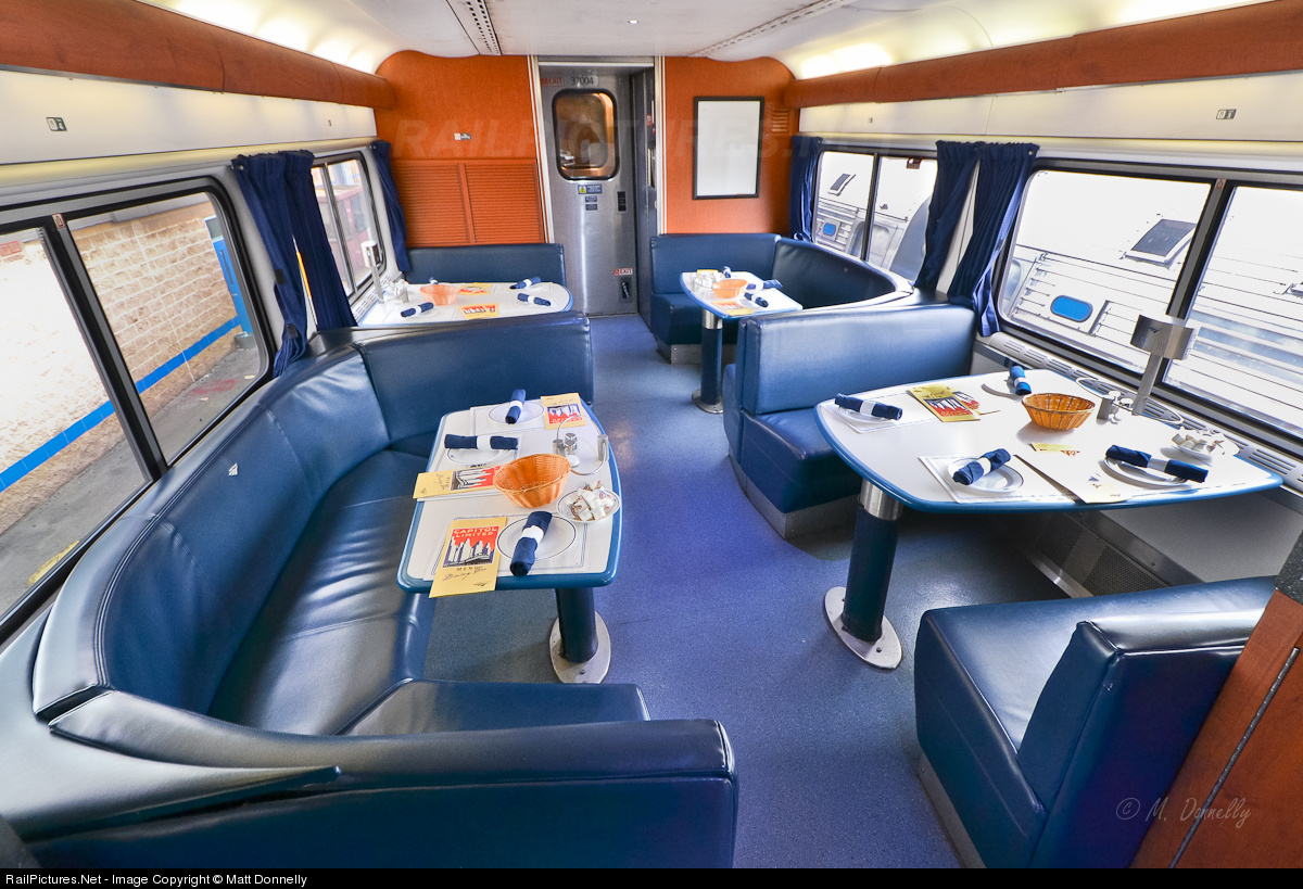 The "cafe" side of the Cross Country Cafe, also known as a Superliner Diner-Lounge.
