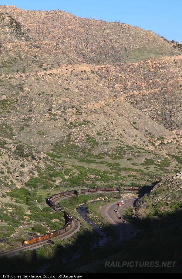 One of the last places to see sun in the Price River Canyon is here between Lynn and Nolan. The high canyon walls can make photography challenging, there is only about 3 1/2 hours of good light to photograph west bounds in the late afternoon... This westbound coal load is down to a crawl as it approaches the steepest section of Solider Summit.
