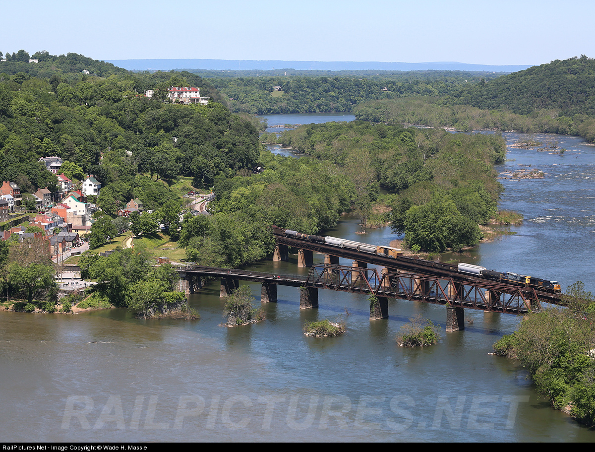 | It seemed like a good plan - hike up to Loudon Heights the night before, camp out, and be in position for some early morning eastbounds. Sunday dawned as a picture perfect day with not a cloud in the sky. Unfortunately, there were no trains either. As the morning progressed I knew Amtrak would be coming and I could get at least one shot before hiking back to Harpers Ferry. At 11:15 I was surprised to see a CSX freight running wrong main about 45 minutes ahead of P030. |