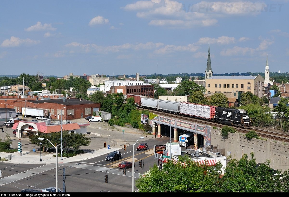 | NS Local L3a is returning to Moraine Yard after working in Springfield,Oh. The train is passing over Fifth Street in downtown Dayton,Ohio. |