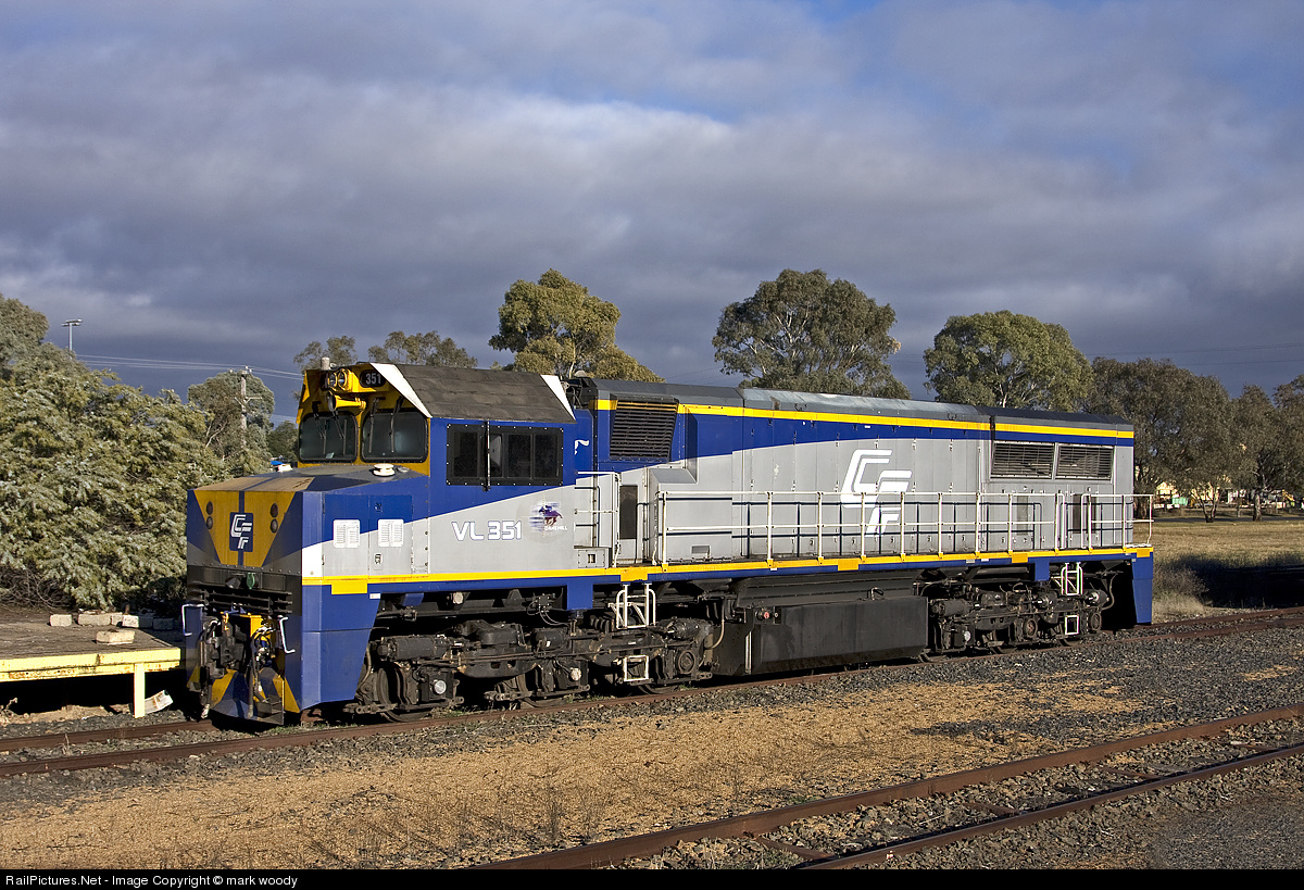 | Built by AVTEQ Melbourne in Feb 2007 for Chicago Freight Car Leasing Australia and on hire to El Zorro, VL351 waits for its next job and enjoys sunrise on this overcast winters Sunday stabled on the mill siding at Gulgong, CFCLA has named some of their locos after race horses, this one is named after champion " Danehill " |