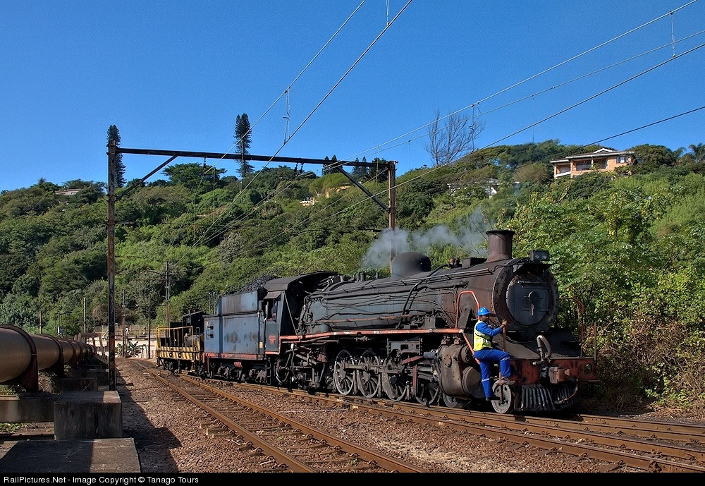 | Having shunted empties at the yard, Sappi“s 19D class steam locomotive carries the shunter from the East end of the yard to the West end ... it would have been a long way to walk. |