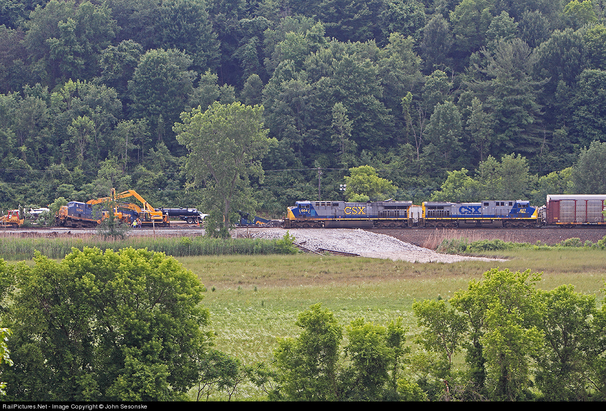 As the derailment cleanup continues on Saturday, the second train rolls thru the work zone on Track 2 at 5:09pm. The first train thru was Q019 at 4:39pm. The derailment occurred on Thursday June 27th just before 8am resulting in an approx. 56 hour track closure on this busy line.