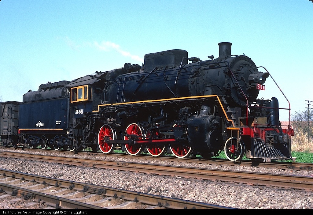The Chinese KD7 2-8-0s were built in the US as post war relief. A total of 160 were sent to China in 1946-47 with the order split between Baldwin, Lima and Alco. The engines were much liked by the Chinese but by the time this photo was taken they had long been bumped off mainline trains and relegated to yard and transfer duties were they continued to provide good service. This example appears to have been built to oil firing but has been converted to burn coal.