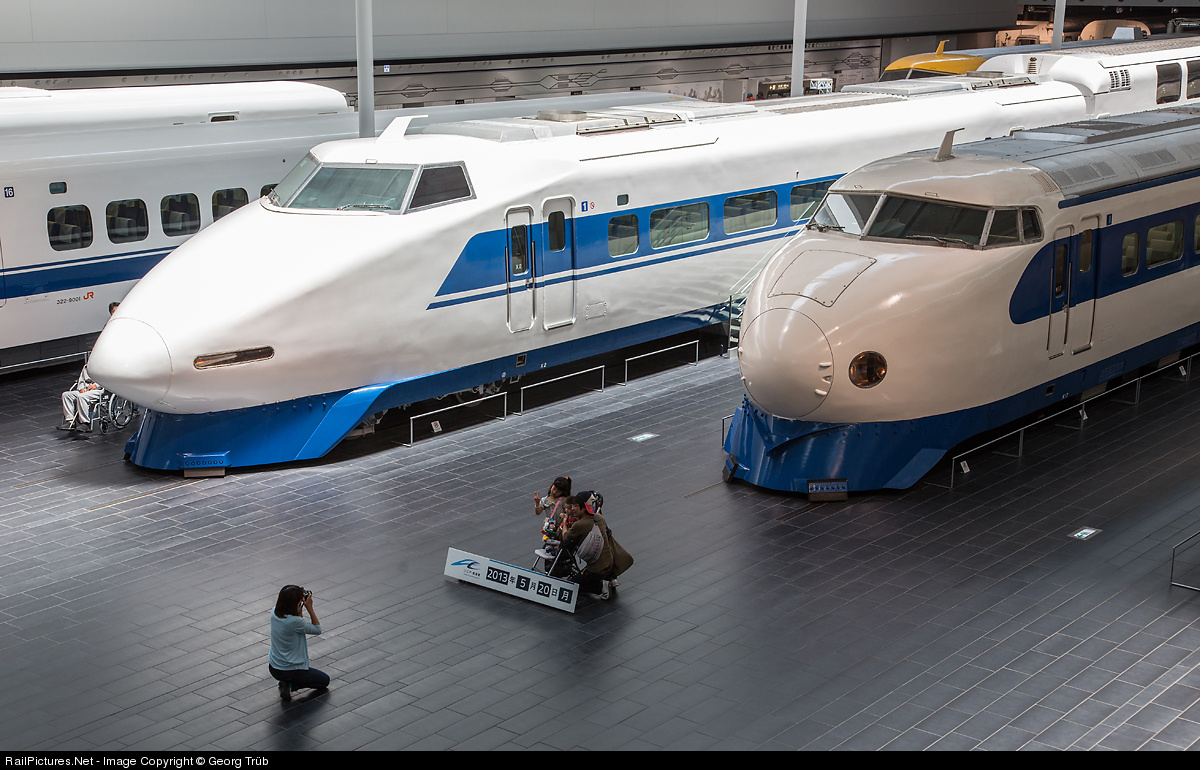 Japanese love to shoot some photos on their excursions, where the date is recorded on the picture. Here a mother takes a photo from her family in front of the icon of Japanese high-speed rail, a Shinkansen Series 0, in the SCMaglev and Railway Park in Nagoya. 0 series were in operation from the beginning in 1964 till 2008, in the last years shortened and relegated to Kodama services in the West. This particular car 21-86 dates from 1971. On the left, a 100 series endcar, built from 1984 and in service till 2012.