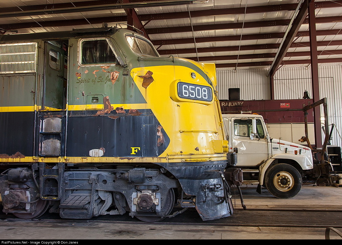 Ex CNR FP9 6508 is getting serviced along side a road repair truck and OSR S-5 Alco switcher inside the OSR Salford shop. The name "Spirit of St.Jacobs" used by former owner can still be seen on the side of her cab.