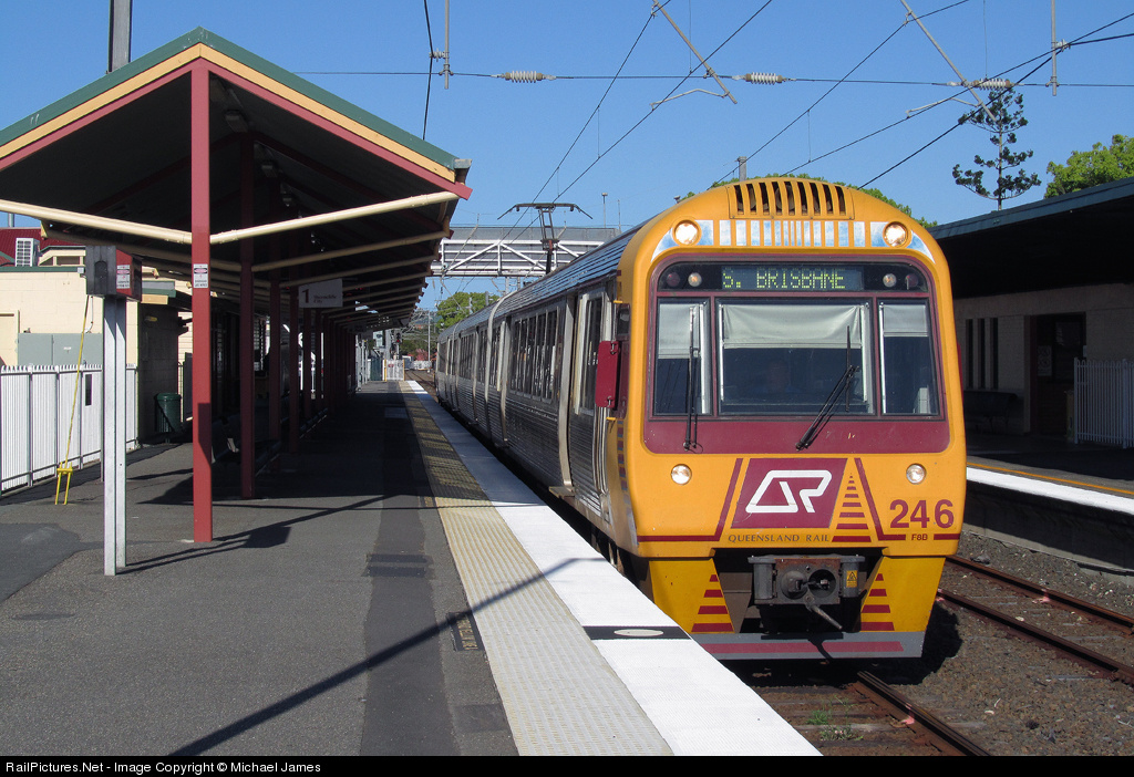 | Two elements of this photo have now changed; Sandgate Station has under-gone a major upgrade and SMU 246 has had a communications system upgrade (and will soon be overhauled). On this clear afternoon, SMU 246 is seen working a QR CityTrain Service from Shorncliffe to South Bank. |
