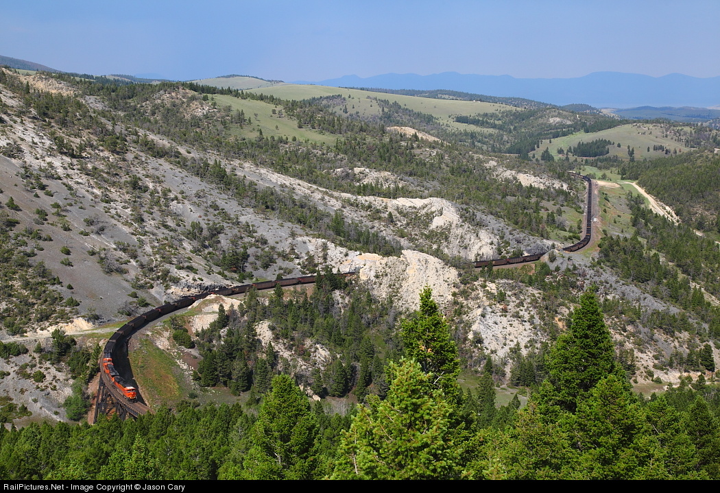 It is 430pm, a storm is bulidling over the mountains of Helena National Forest to the east. For 30 minutes the throbbing of 8 AC locomotives could be heard over distant rumbles of thunder as BNSF9266 approached with its train of bathtub gondolas laden with export coal.