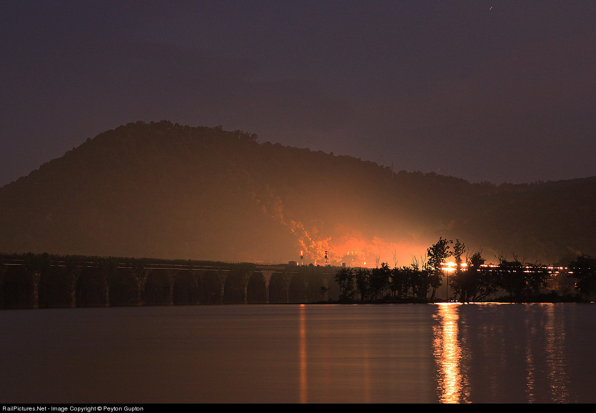 The quiet of the night is broken as a Norfolk Southern manifest rumbles across the Susquehanna River.