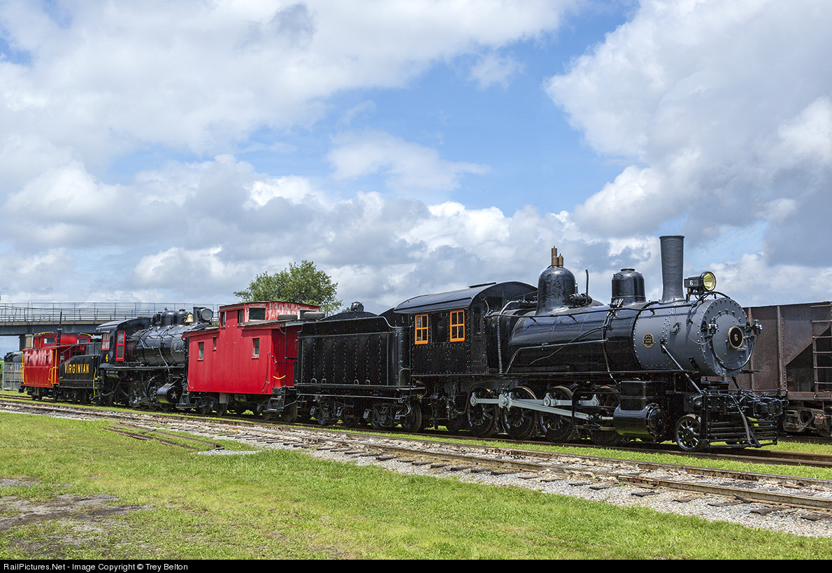 The 1897 Norfolk & Western #6 Baldwin Locomotive Works and the 1910 Virginian #4 Baldwin Locomotive Works sit in the yard at the VMT.