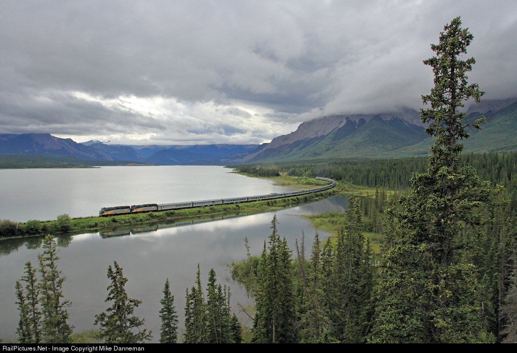 VIA Rail’s train No. 2, the Canadian, skirts the shores of Brule Lake at Swan Landing, Alberta, on July 13, 2013. Two rebuilt F40PH-2s (now labeled F40PH-3s) power the 21-car streamliner eastbound on Canadian National’s Edson Subdivision.