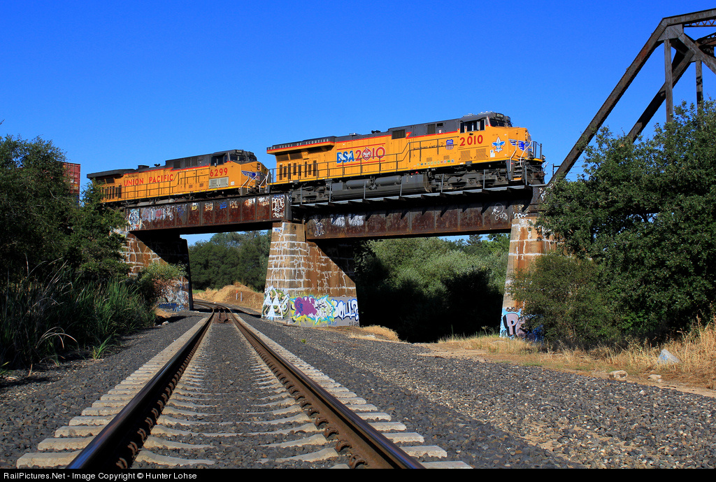 | As UP 2010 and the KLTG2 passed through Rocklin they tripped a high and wide detector and had to come to a stop and wait for the car department to come up from Roseville, it was discovered that one of the containers was three feet higher than the tunnel clearance, so the train had to back into Roseville to set out the bad well set |