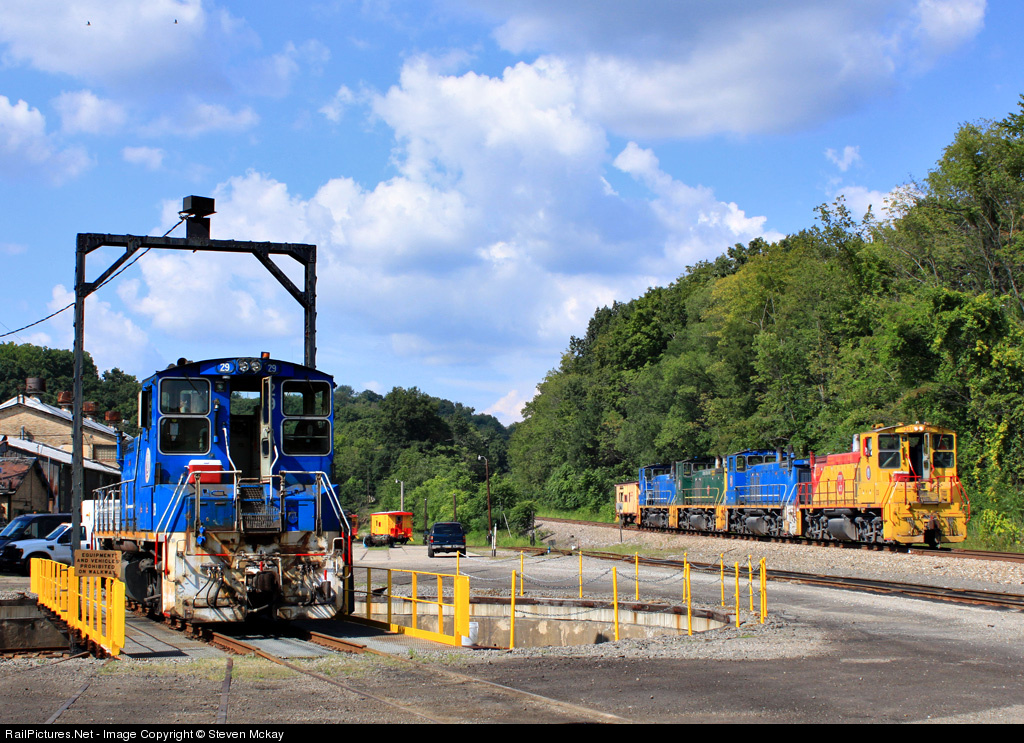| 50 crew rolls to a stop after taking empties up to North Bessemer, they will get a recrew here at the shops. URR 29 takes a spin on the turntable and will replace one of the four MP's on 50 crew. |